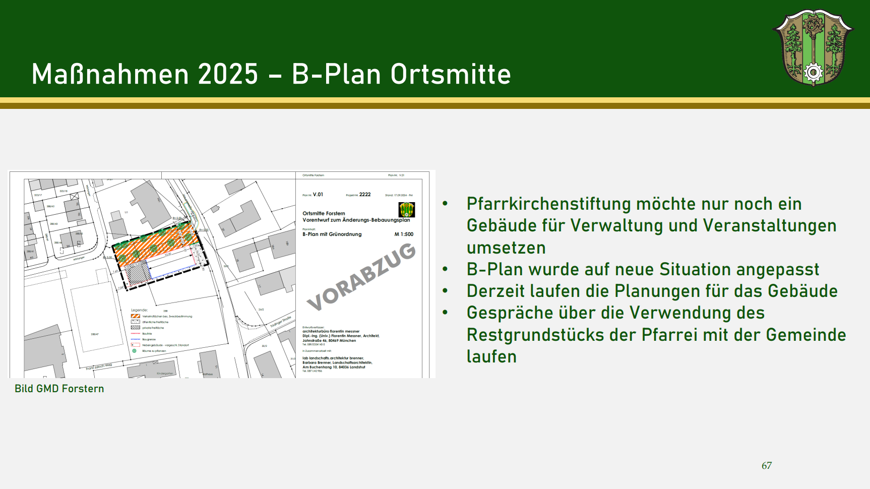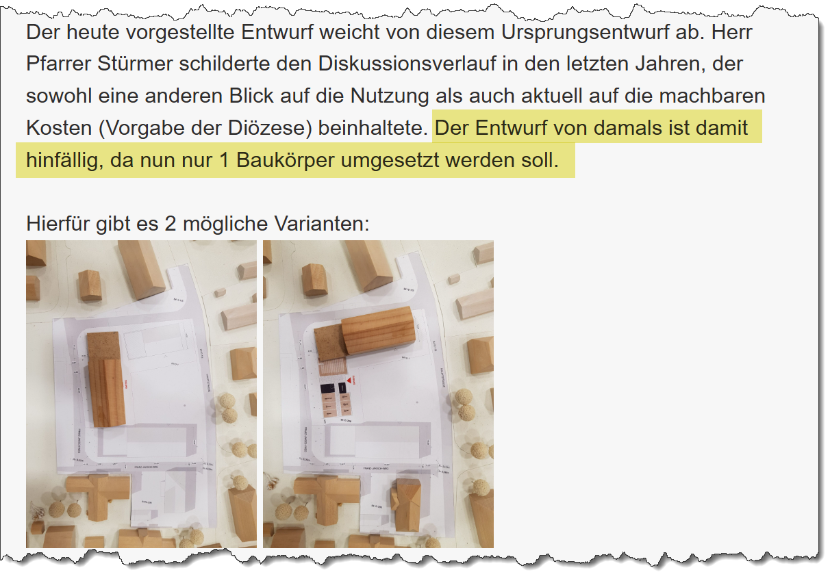 Die bisherige Bauleitplanung (von 2015) kann auf der Webseite des Architekturbüros Florentin Messner eingesehen werden.
