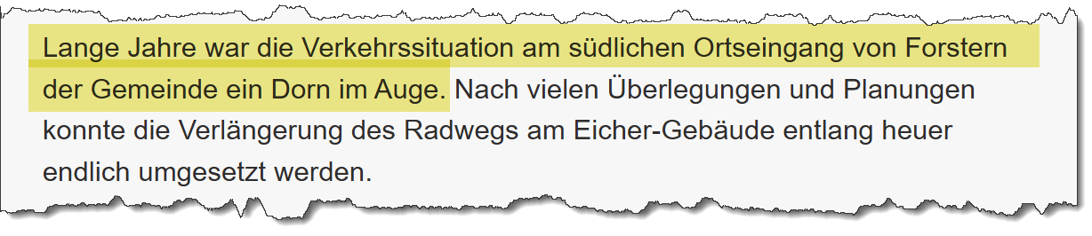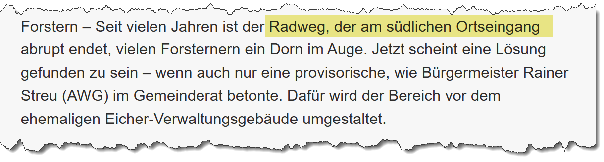 Gemeinde Forstern löst Problem am Ortseingang